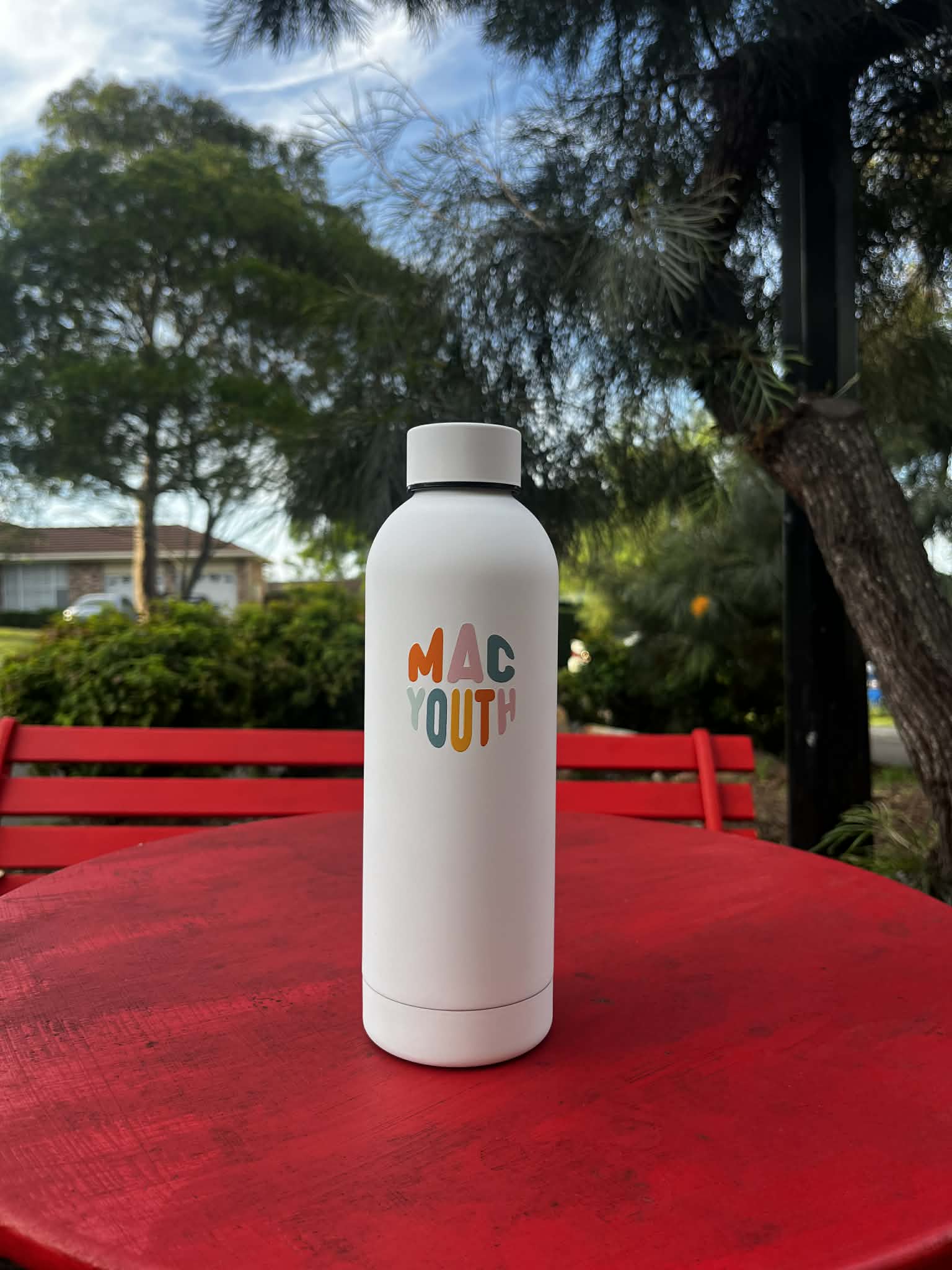 Stay hydrated in style with this coloured metal MAC Youth Drink Bottle! Comes in black, green, blue, purple and white.